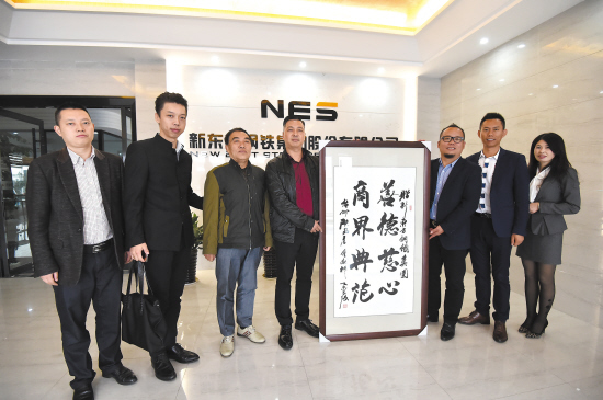 新东方钢铁集团股份有限公司董事长徐章军,义救陕西籍员工张龙生的事迹经本报报道后(详见10月26日第四版),在社会各界,特别是新台州人中引起了强烈反响。昨天上午,台州陕西商会(筹)的几位负责人来到新东方钢铁集团股份有限公司,代表在台州的全体陕西人,将写着“善德慈心,商界典范”匾额送给徐章军。