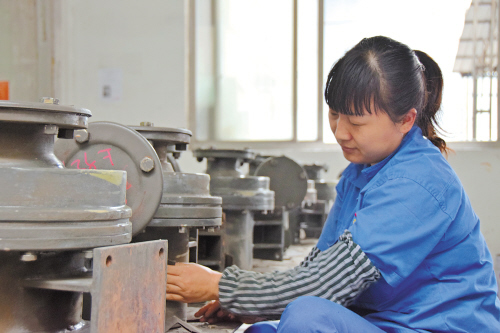 尔格生产车间里 工作人员在清理油泵