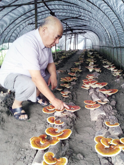 近日,台州药用真菌研究所所长甘连法在椒江区洪家基地观察无孢子灵芝的生长情况。该研究所的灵芝无孢子释放技术栽培试验项目,在种植上几经波折,于今秋获得成功。丰收在望等待采摘的无孢子灵芝体型大,光亮度显眼,药物营养成分要比普通灵芝提高3—5倍。