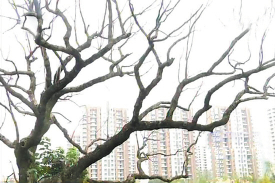 温岭市城市管理行政执法局城东中队副中队长李晨晖告诉记者,2005年征地后,2011年开始填土,填土后这棵树也没有死亡,到2013年的时候,发现这棵树逐渐枯萎。