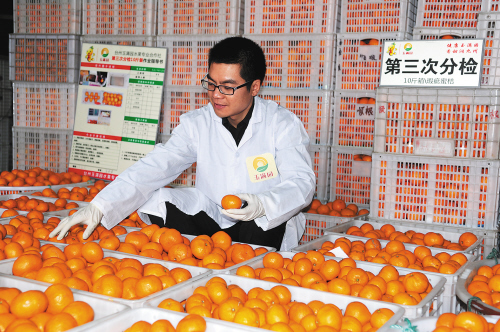 玉满园的橘子要经过三重筛选,这些标准是冯仁方自己发明的,然后教给工人们。
