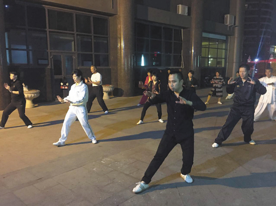 如今,几乎每天晚上,港湾社区的广场上,总能看到一群精神抖擞的居民在练太极,有20岁出头的小伙子,也有已是古稀之年的老大爷。“刚来港湾社区教的时候,跟着练的很多,但是学习是需要毅力的,有的人中途退出了。当然,也有人后来加入,现在,固定在练习的大概有30多人。”郑显军说。