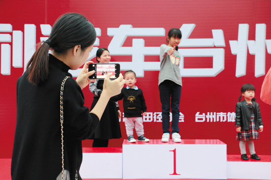 11月14日下午,台州首届国际马拉松比赛前夕,不少参赛选手带着小孩纷纷站上搭建好的颁奖台拍照留影,体验了一把心中的“冠军梦”。
