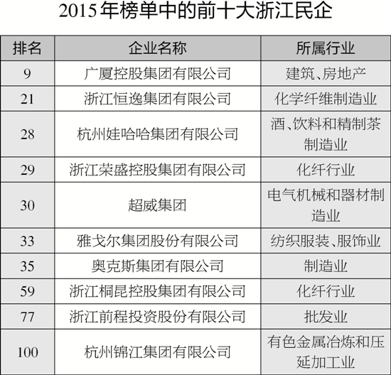 原标题: 2015中国民营500强企业发布 浙江入选数量全国居首