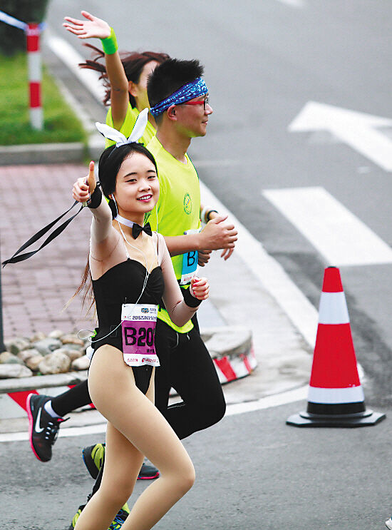 对于网上“‘兔女郎’是来作秀的,只跑了几百米”的传言,姚予萱微笑着纠正:“我跑完半程的,时间是2小时18分,排在244名。”