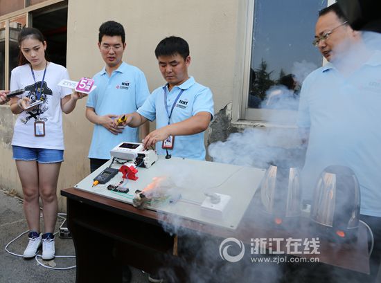 电气火灾实验现场,短路瞬间火花可达2000℃。