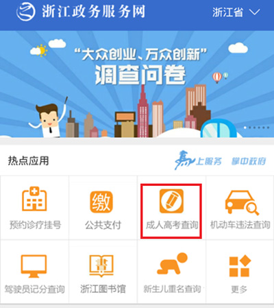 今天起登录浙江政务服务APP 成人高考成绩一键查询