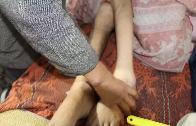 项阿姨有两个儿子,一个做了人家的上门女婿,一个在某公司当保安,每个月仅2000元的工资。两个儿子膝下都有两个正在上学的孩子。项阿姨说,两个儿子也经常来看望他们,但是除了给他们一些生活费,而面对巨大的医疗费用和这样的现状,儿子却只能抱着床上的老父亲痛哭。项阿姨说到这里,一向乐观的她声音也哽咽了。阿姨在给她老伴按摩的时候,我们看到陈旧的被褥下,叔叔一双腿瘦骨嶙峋。