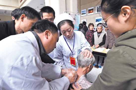 昨天上午,在台州市立医院的广场上,来自省内的名中医们现场为市民免费进行针灸义诊。从11月16日起,为期6天的“世界针灸周”科普系列活动在该院举行,来自全国各地的针灸专家会聚台州,开展了专题研讨和交流。
