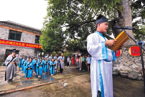 图为黄岩屿头乡沙滩村文化礼堂内举行的经典诵读活动。郏静妮摄