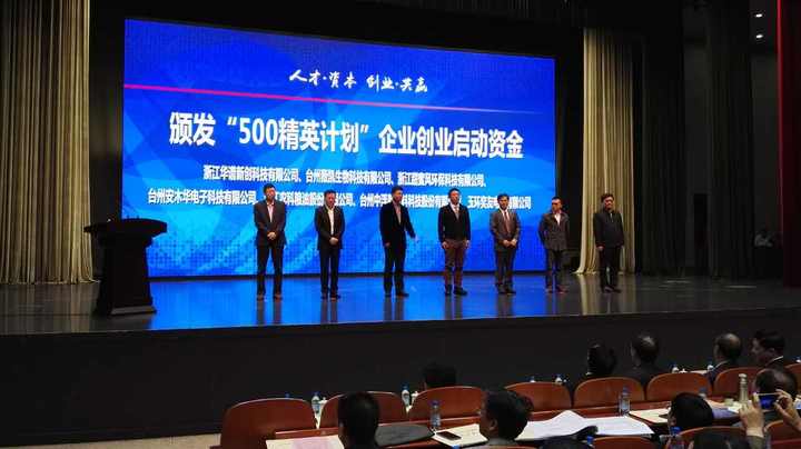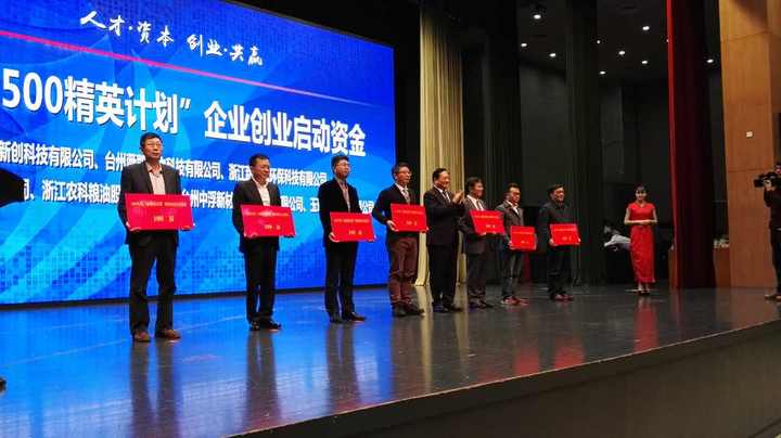 9:15:台州为浙江华谱新创科技有限公司、台州薇凯生物科技有限公司、浙江甜蜜风环保科技有限公司等7家公司送上创业大红包,“500精英”创业企业代表领取创业扶持资金。