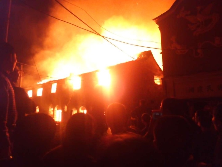 据在场村民说,起火点是中央的那间房子。“本来都在睡觉,听见噼噼啪啪的声音,我们都跑出来了。”由于火势蔓延的很快,又会危及祠堂,于是就报了警。