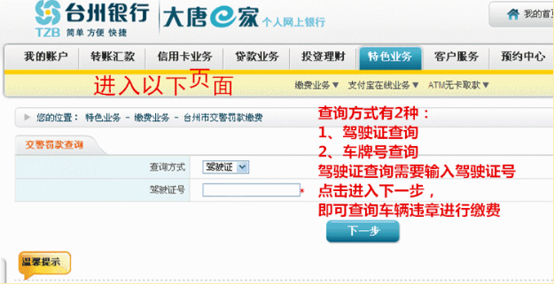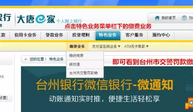 (1)由现场民警开具了简易处罚决定书,无需再到交警部门开具处罚决定书,就可以直接通过台州银行网上银行缴款。