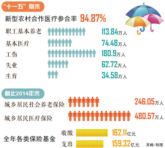 “十二五”期间,我市不断健全完善医疗保险制度,基本医疗保险报销比例不断提高。2014年,我市新型农村医疗保险和城镇居民基本医疗保险更是经过整合,成为城乡居民医疗保险。