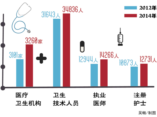 在“十二五”期间,台州市逐年增加医疗服务方面的经费投入,2014年拨款167433万元,比2013年增加了16463万元。
