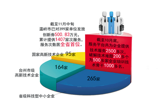 记者了解到,截至11月中旬,温岭市已对399家单位发放创新券500.83万元,累计提供1407家次服务,服务次数居全省首位。