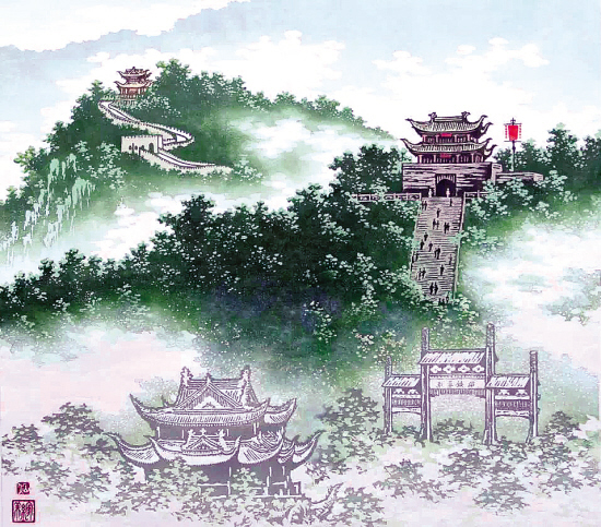 古城春晓春到临城草木苏,白云揽胜眺平湖。逶迤雉堞千年固,常有天仙伴旅途。