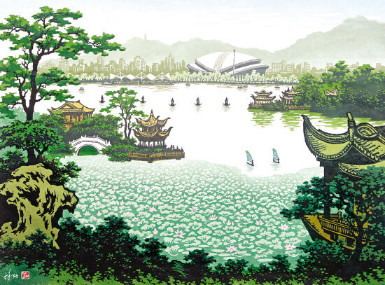 灵湖夏韵最爱灵湖六月中,几塘荷藕花正红。五潭印月水如镜,多少亭台靓影重。