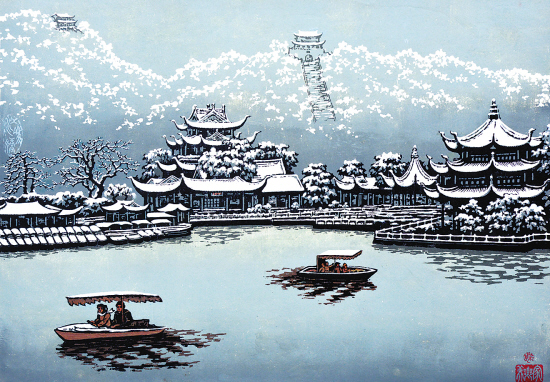东湖瑞雪喜见隆冬瑞雪飞,银装素裹几多回。骆祠樵阁层檐耀,凝碧半勾亭更辉。