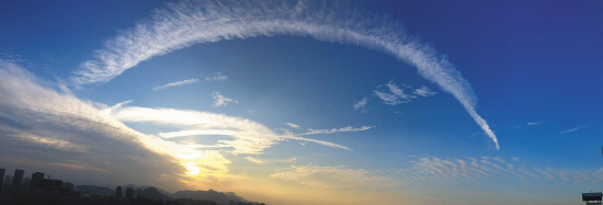 昨天下午,椒江的天空出现一片漂亮的云彩,犹如一道弯弯的眉毛横过天际。