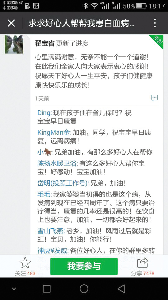12月初,一名病友告诉翟宝省,像他们这种情况,家里实在困难的,可以在网上发起众筹寻求社会帮助,得白血病的,大多家里条件都不好,在病友中就有人通过网上众筹的方式,或多或少解决了一部分实际困难。