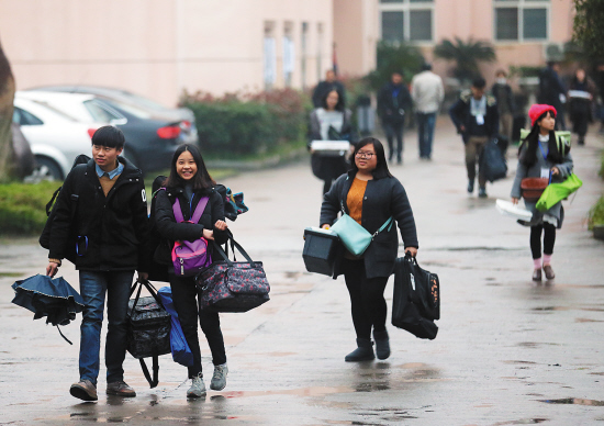 12月13日,2016年浙江省普通高校招生美术类专业统考开考。我市2000多名应届考生于椒江三梅中学考点参加统考。图为考生结束最后一门色彩考试后,陆续走出考场。