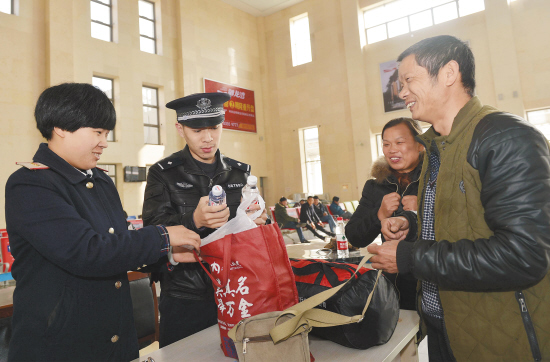 第二届世界互联网大会于12月16日至18日在乌镇举行。为确保大会召开期间铁路治安平稳有序,三门县公安局亭旁派出所配合三门火车站警务室强化安检查危、武装巡逻等,给旅客打造平安、和谐的乘车环境。图为12月12日三门站铁路民警在火车站对旅客进行开包检查。