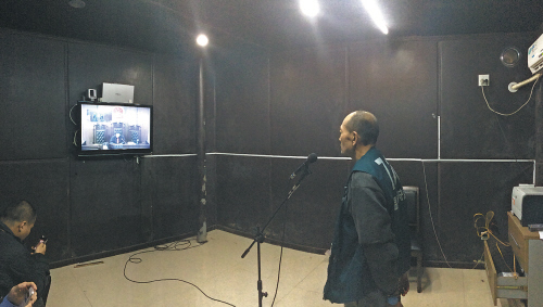 被告人在看守所通过温岭法院的远程视频进行庭审