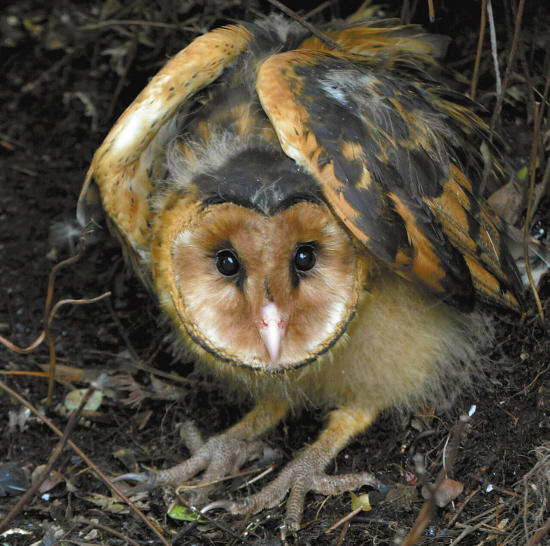 管委会的工作人员看到图片后,也吃不准这到底是什么鸟,就联系了省里的鸟类专家。一问才知道,这些小家伙大名叫草鸮,民间也叫猴面鹰,属于国家二级保护动物,是世界濒危物种之一,我省在其栖息地范围内。
