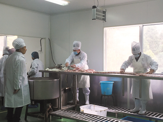 “制作香肠一般选用有肥有瘦的猪肉,切成小块。香肠晾晒的时间、湿度比较有讲究,成品需冷藏储存。”具有香肠制作经验的合作社理事长杨焕林说,一般香肠晾晒15天左右,让其保持一定的湿度,不然吃起来肉质会比较干。