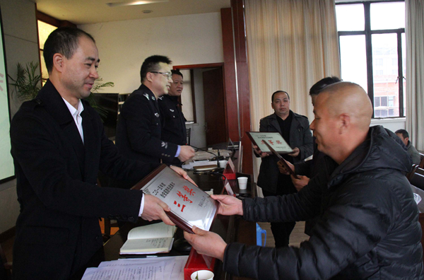 图为对治安巡防工作先进集体和个人进行表彰