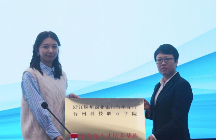 最后,稠州银行台州分行行长助理吴娴与台科院会计与金融学院副院长符茜共同为“校企合作人才培养基地”揭牌,标志着银校双方迈入务实合作、互动发展的新篇章。