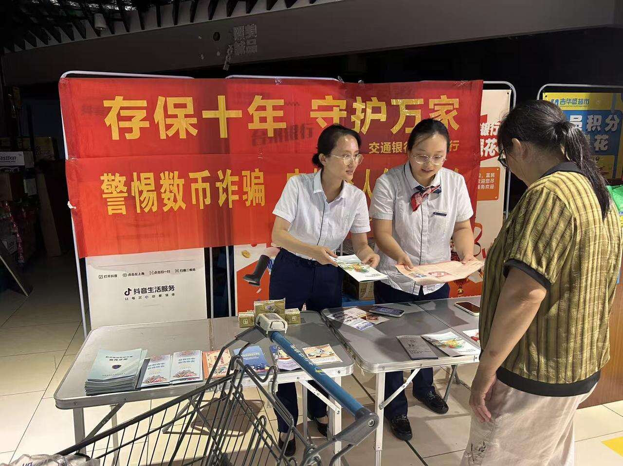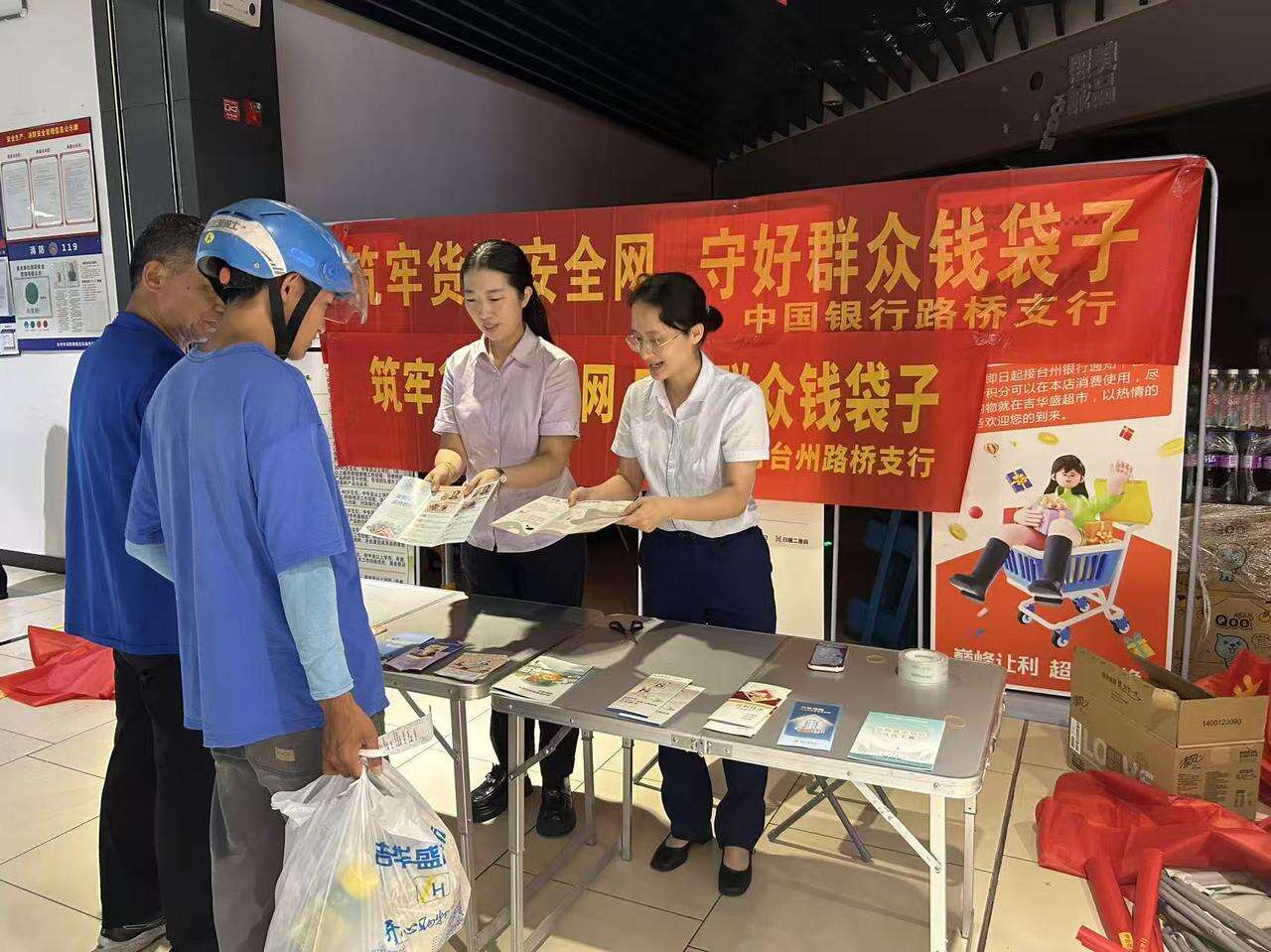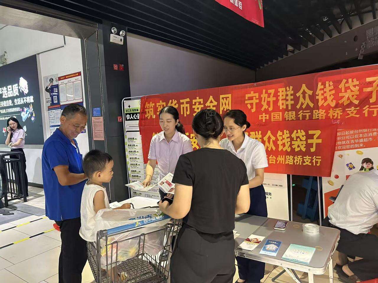 近日,交通银行台州路桥支行2025年金融教育宣传周,契合反假货币宣传月活动,以“筑牢货币安全网 守护群众钱袋子”和“警惕数币诈骗 守护个人信息安全”两大主题为重点,联合中国银行路桥支行进商超,开展一系列宣传活动。
