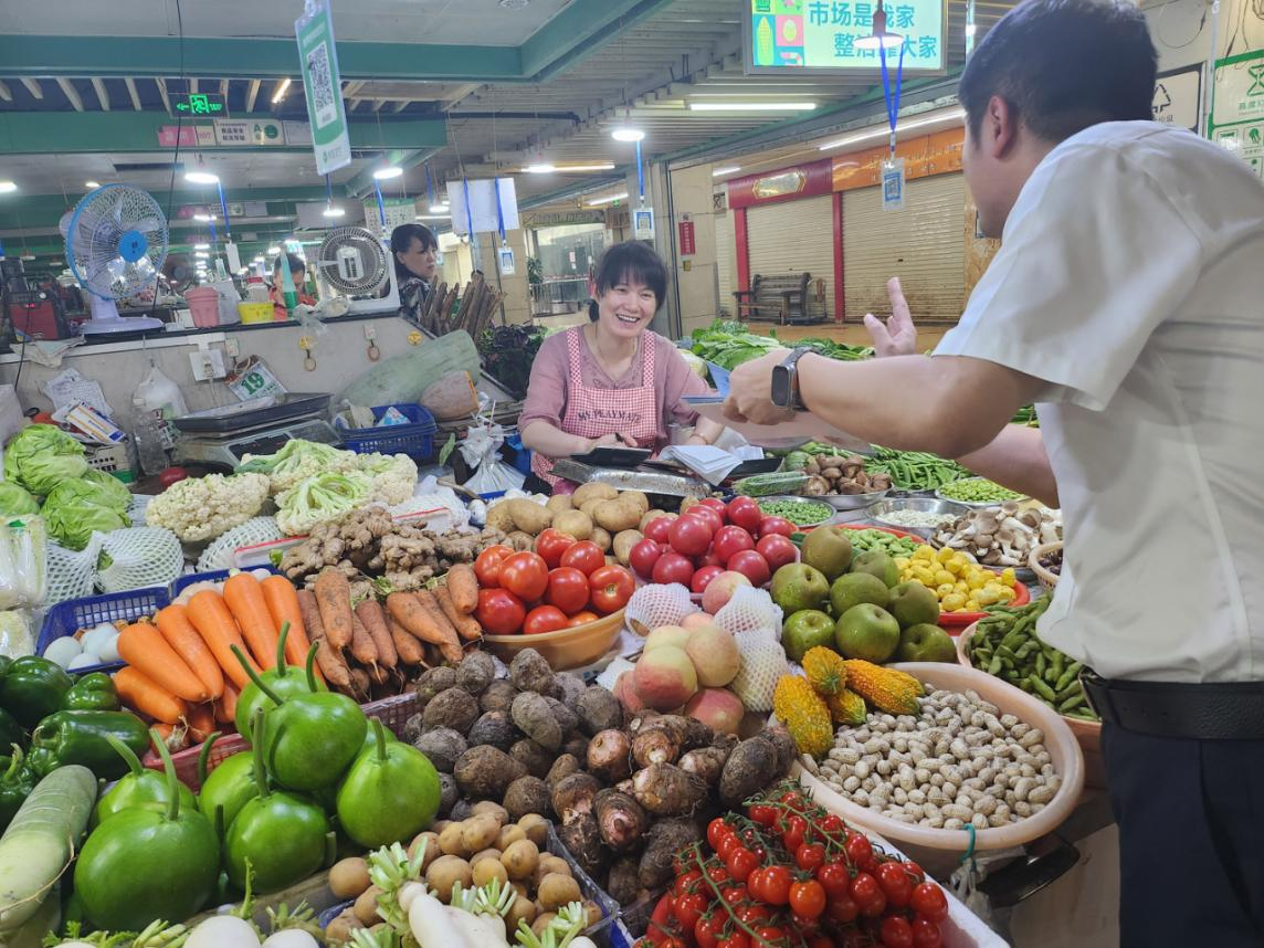 在玉环市中心菜场,金融宣传小队的身影出现在人流中,这里是中老年消费者和个体工商户最为集中的地方,也是金融诈骗易发、高发的区域。宣传员们穿梭于各个摊位之间,主动向摊主和前来购物的市民发放宣传折页,并耐心讲解。针对老年人群体,他们重点介绍了如何识别假币、防范“养老骗局”等。针对个体工商户,则着重讲解合规使用收款码、反洗钱、防范假币等金融知识。期间,宣传员们用当地方言,以拉家常的方式,将复杂的金融知识转化为一个个生活小贴士,让金融宣教更接地气、更具温度。一位卖菜的张阿姨感慨道:“以前总觉得银行里的事离我们很远,今天听了你们的讲解,才知道这些知识这么重要,以后可得多留个心眼!”