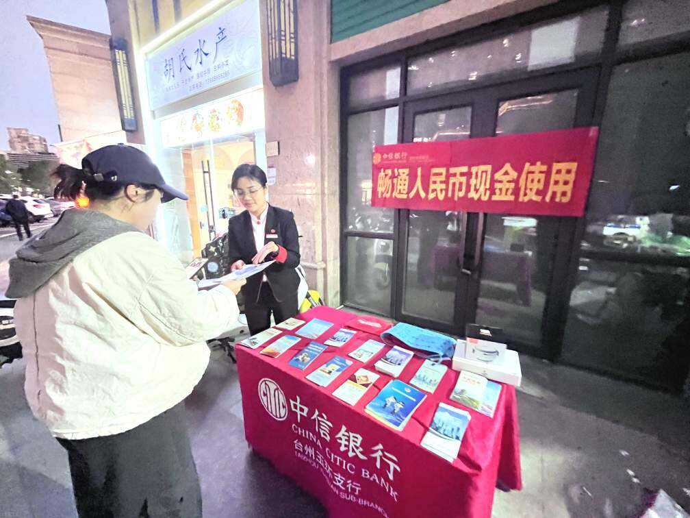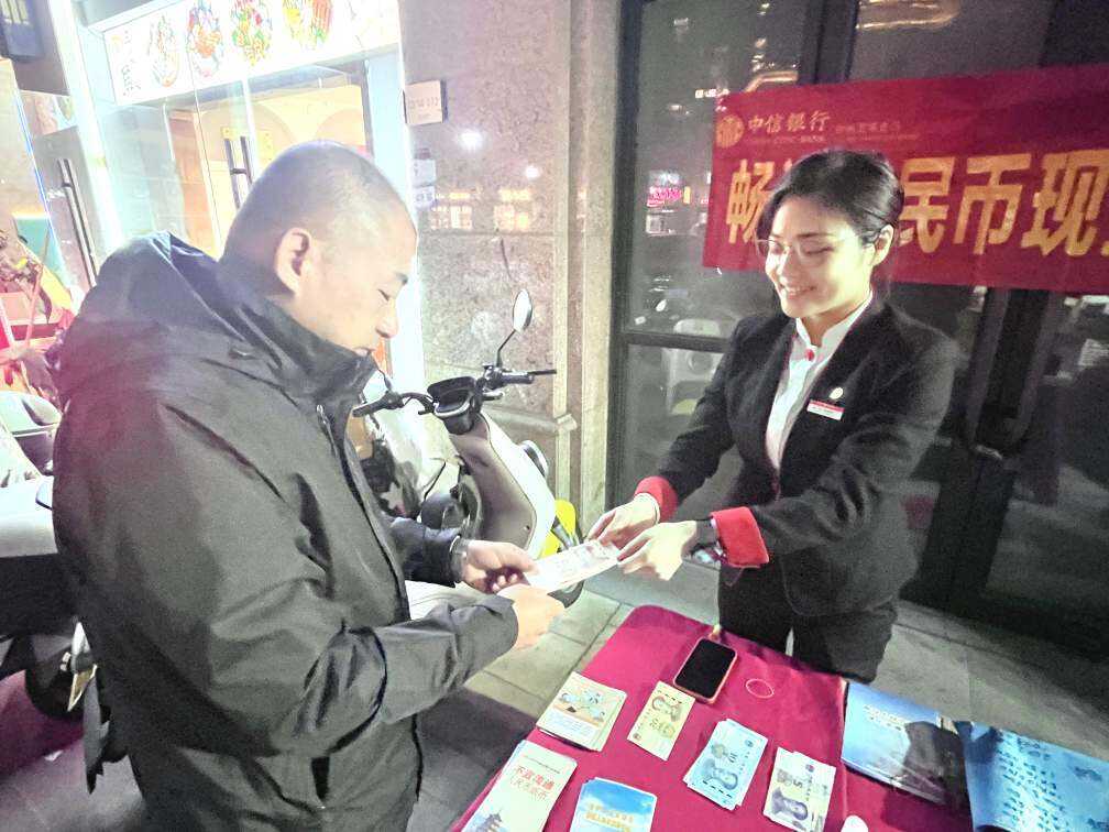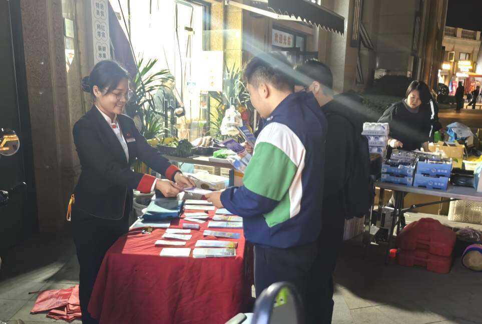 当夜幕为玉环华鸿步行街披上温柔光晕时,沿街商铺的灯火次第亮起,一场以“畅通人民币现金使用”为主题的宣传活动在商铺门口热闹开启。晚风拂面中,工作人员带着精心准备的宣传折页,主动走向过往市民与商户,用通俗易懂的语言讲解现金使用的重要性,传递“现金收付无障碍”的便民理念。