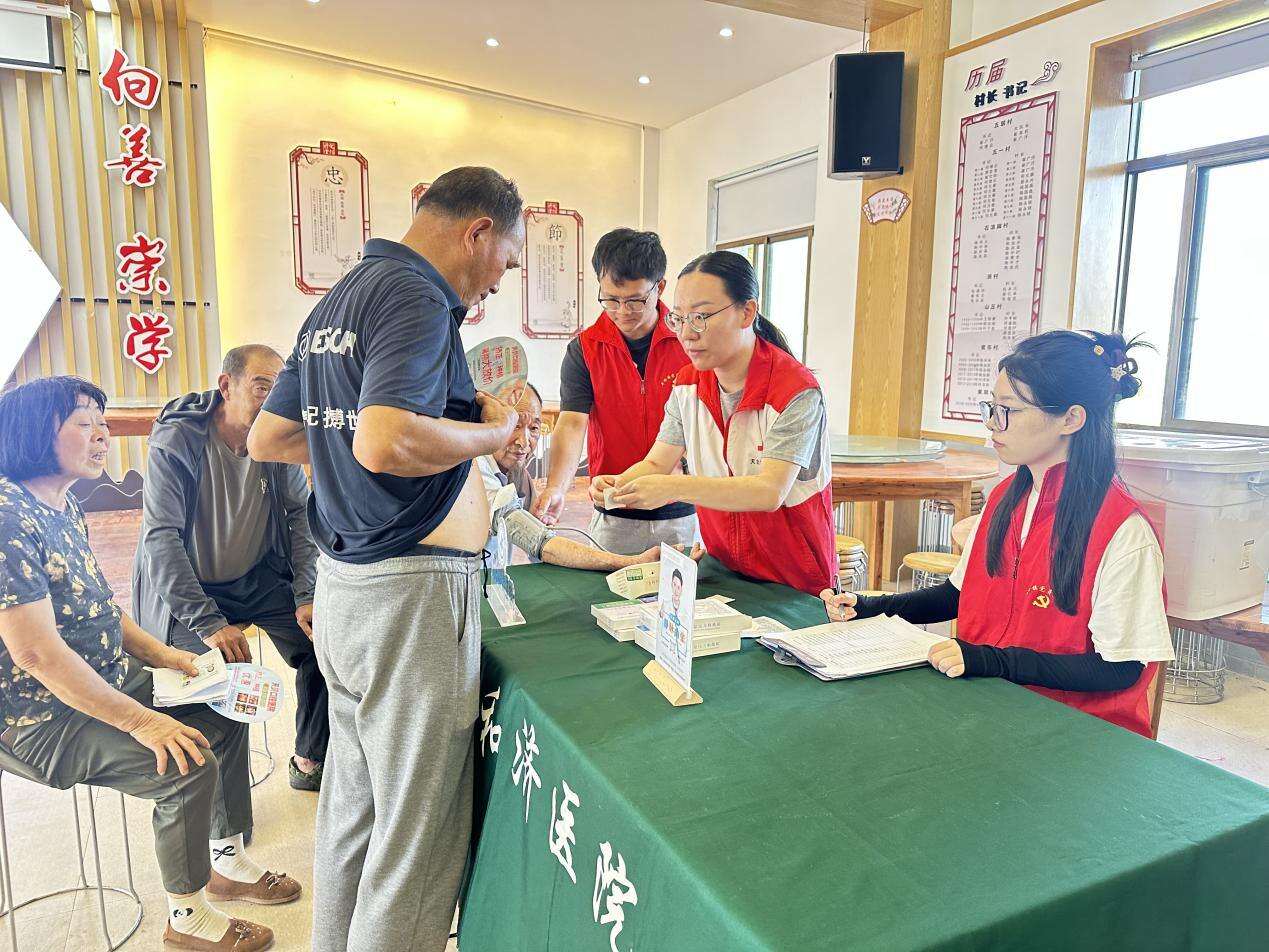 体检区内,来自各家医院的医护志愿者有条不紊地忙碌着。党员志愿者守在旁边,帮着整理体检表,还特意用村民听得懂的方言重复医生的叮嘱:“陈婶,您血压有点高,医生说要少吃盐,我把注意事项写纸上给您”。一上午,村民完成了基础检查,其中多是60岁以上的老人。党员志愿者的细致服务让不少老人连说“比自家孩子还周到”。