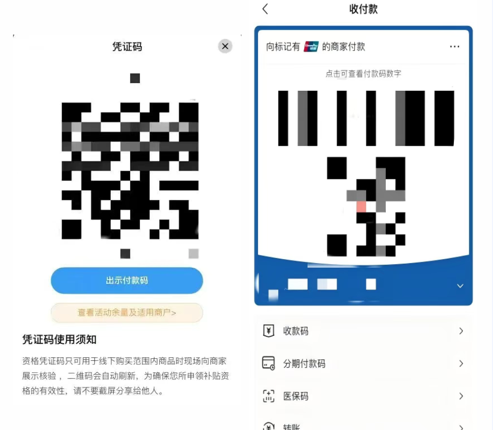 第三步:当消费者成功领取线下优惠名额后,系统以领取当日22点为优惠过期时间节点,相应品类下方会出现优惠有效期倒计时,请在有效期内使用优惠,当日过期不予退还优惠名额。消费者在所在地区参与活动的家电门店使用优惠购买电冰箱时,需现场点击“去使用优惠”向商家展示核验凭证码,再打开云闪付APP“付款码”进行支付,享受补贴优惠。