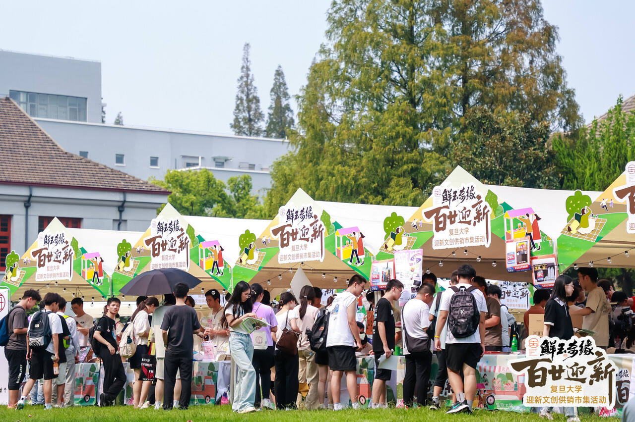 白露至,秋意浓,百廿学府迎新生。9月7日,复旦大学邯郸校区相辉堂草坪人声鼎沸,“鲜玉奇缘 百廿迎新” 迎新文创供销市集盛大启幕。