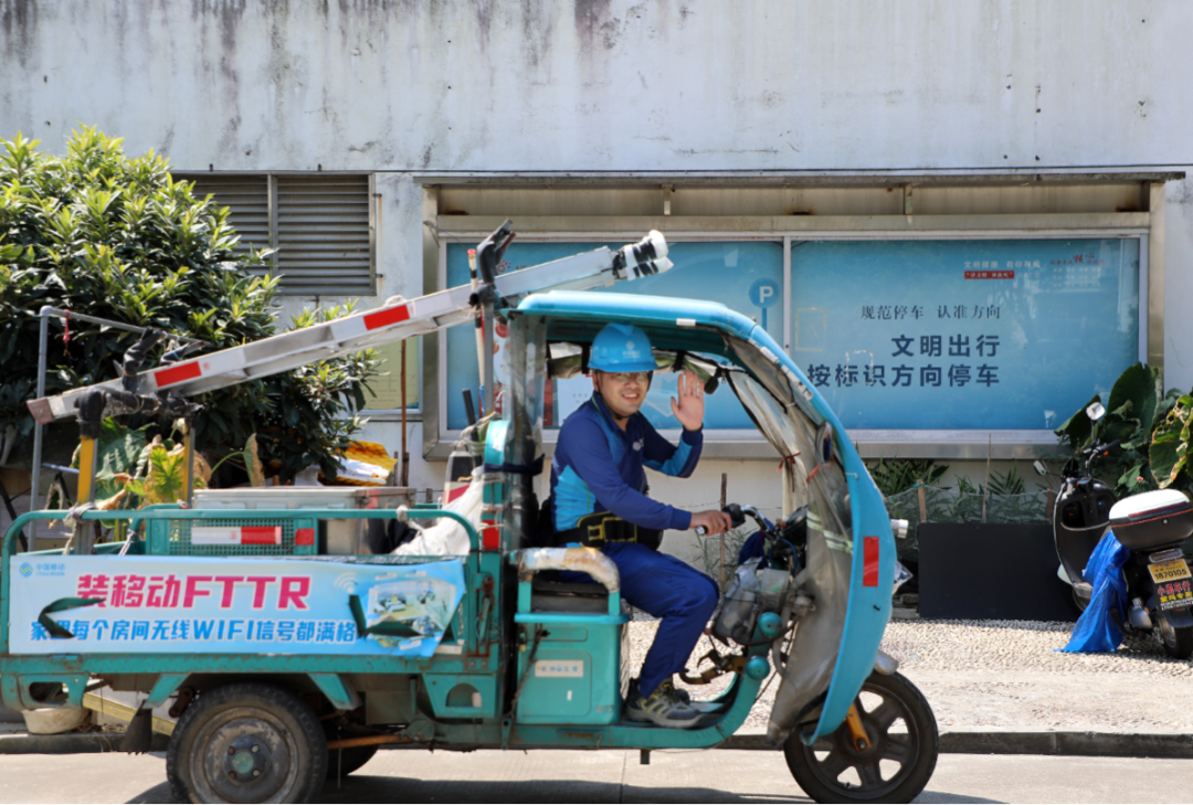 上午10点,温度计指针稳稳停在38℃,地面温度更是突破50℃,连风吹过都带着热气。浙江移动台州椒江分公司宽带安装师傅周涛涛,已骑着蓝色三轮车穿梭在万华城—新世纪商城—心海尚城片区,开启了一天的工作。