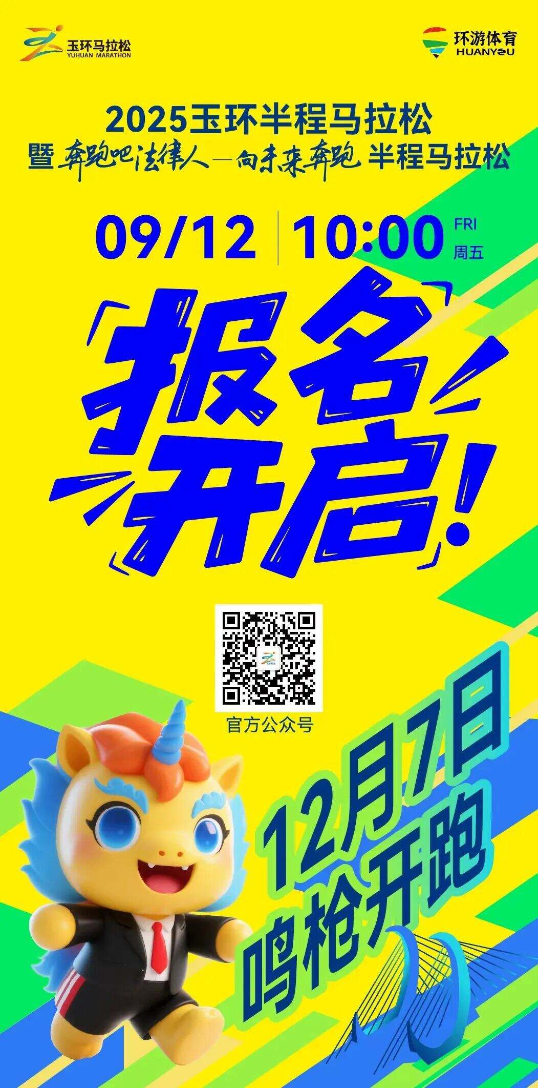 2025玉环半程马拉松暨“奔跑吧 法律人—向未来奔跑”半程马拉松正在积极申报中国田径协会A1类认证赛事,新增10km组项目,总规模提升至6000人!