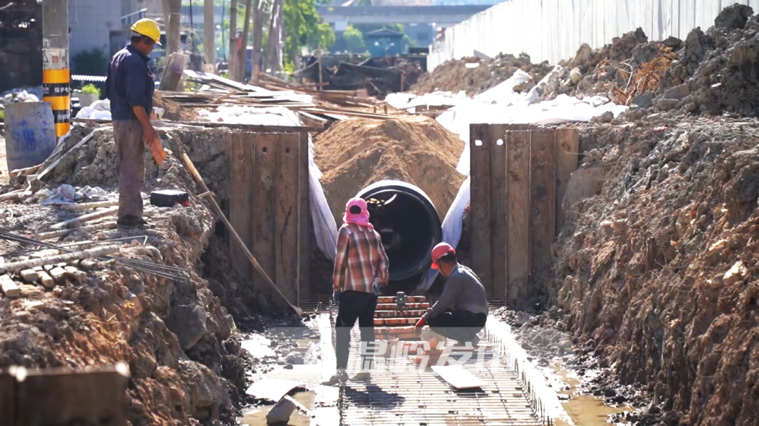 在城东街道东湖社区,连接百丈南路与锦屏大道高架下道路的瓦肖路改造工程正抓紧推进。施工现场,工人们正在砌筑砖块基础,为雨水管道的铺设做准备。现场施工负责人任云方表示,预计9月底完成全部雨水管道铺设,随后进行回填及路面施工。