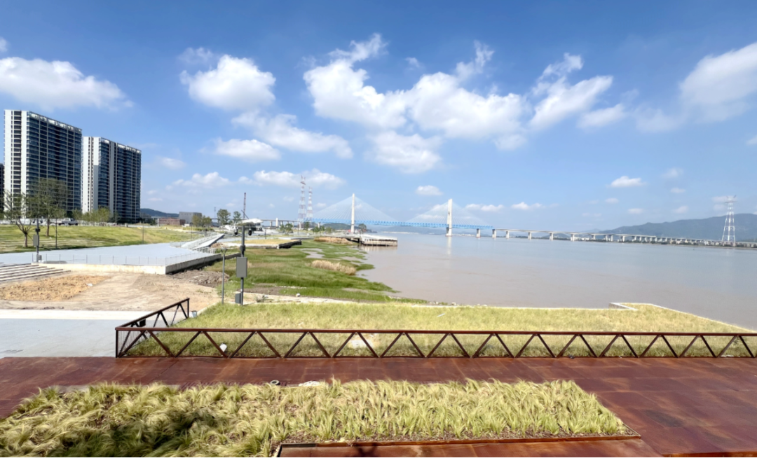 从工业遗址到生态绿廊,从“工业锈带”到“生活秀带”。目前,椒江滨江公共空间“加长版”——江南城西段海塘岸线整治及生态修复工程(学院路至教七路段高滩地生态修复)全面完工。