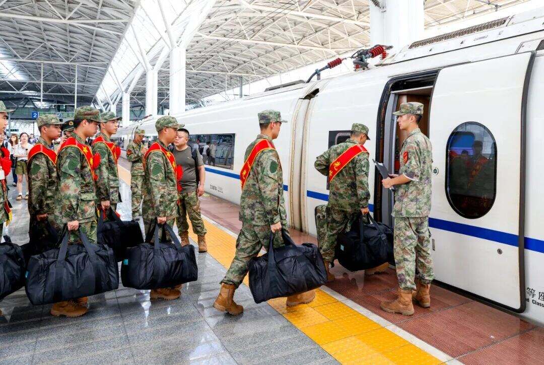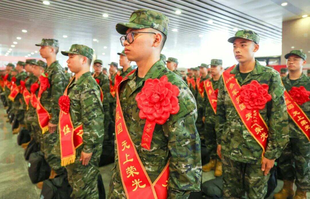 9月18日上午,台州市2025年下半年新兵入伍欢送仪式在台州西站举行,514名新兵英姿飒爽、列队整齐,胸前“光荣入伍”的绶带格外醒目。他们怀揣报国之志与青春梦想,即将搭乘列车奔赴军营。