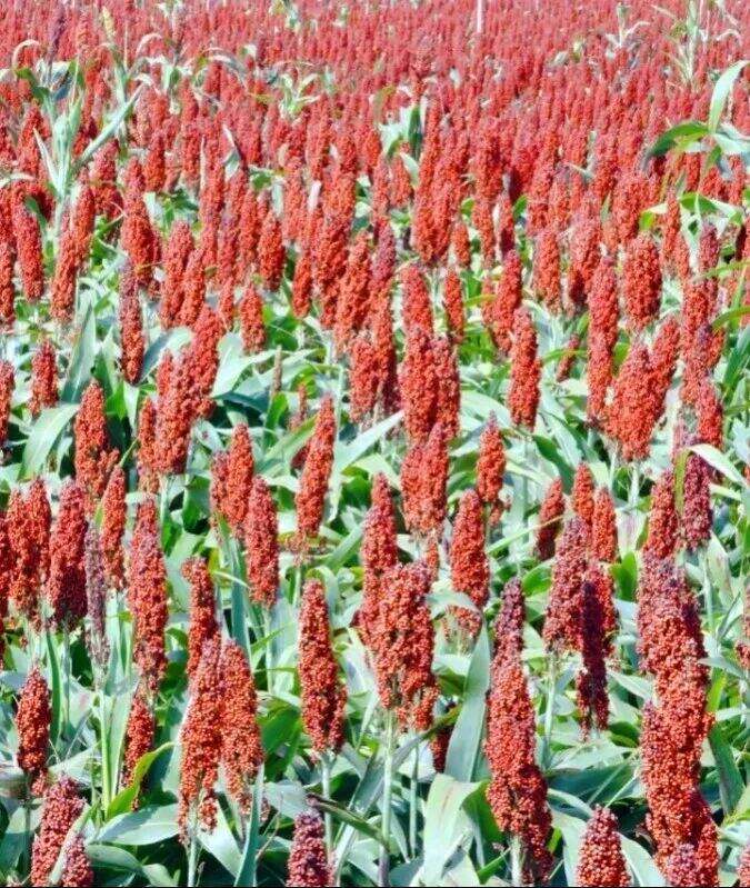 “今年是第一次种高粱,没想到收成这么好!你看这高粱穗,红得发亮,籽粒也饱满,快到国庆了,就像给新中国庆生,心里别提多高兴了!”正在田间收割的村民陈大爷一边麻利地挥舞镰刀,一边笑着说道。