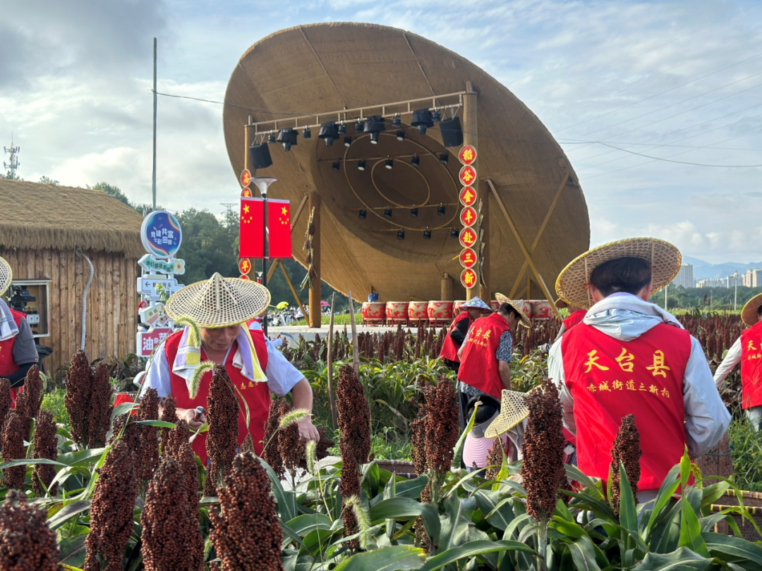村里首季种植的红高粱迎来丰收收割期。田间地头,村民们一起手持镰刀,在沉甸甸的高粱穗间穿梭,饱满的籽粒、红艳的穗子与他们脸上的笑容相映,构成一幅迎华诞、庆丰收的生动图景。