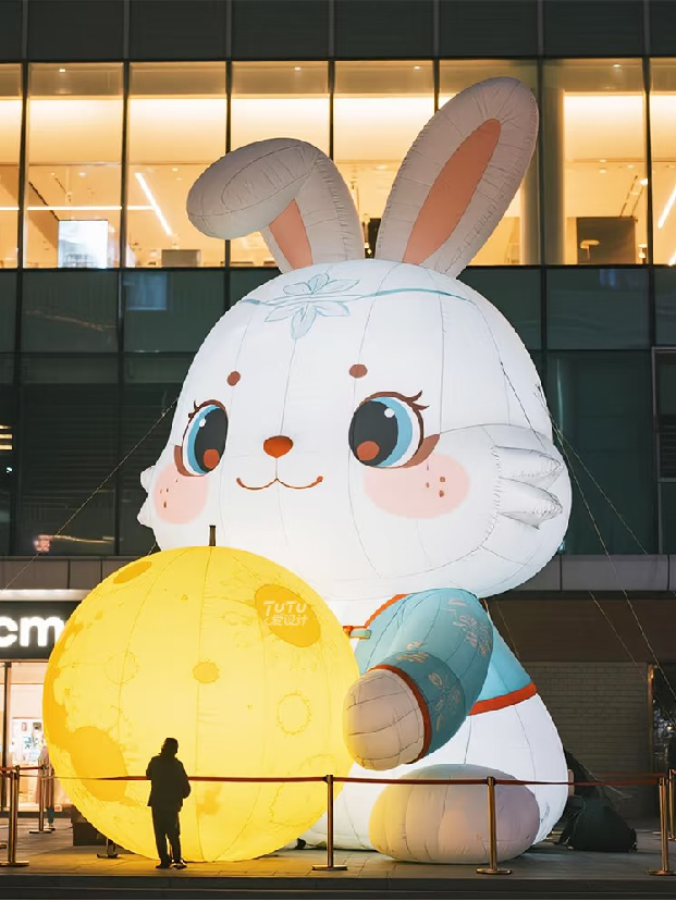 无论是带娃打卡记录成长瞬间,还是与朋友合拍搞怪照片,这里都是绝佳的拍照背景板,轻松收获满满童趣~街区内随处可见的国庆红色喜庆氛围加上超大月亮兔子造型,夜幕降临时,灯笼亮起,月光与灯光交相辉映,让双节仪式感拉满!