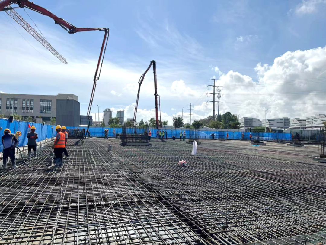 施工单位项目经理林启松告诉记者,顶板混凝土浇筑从当天早晨6点开始,持续到晚上8点左右结束,一共需要浇筑1850立方米混凝土。为了赶工期、抢进度,他们从3月底开始,连续奋战180天,多个班组同步施工,最多的时候有近200人同时工作,终于迎来了主体结构的完工。