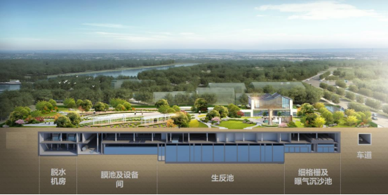作为台州首个全地埋式污水处理厂——椒江区分散式净水厂建设工程(太和净水厂工程),该项目最大的特点是上部是公园,下部是地下箱体,所有的污水处理构筑物都在地下进行。地下箱体分为预处理、生物反应池,以及膜池、再到最终的脱水机房等。通过处理,水质最终达到台州市准IV类地表水排放标准。