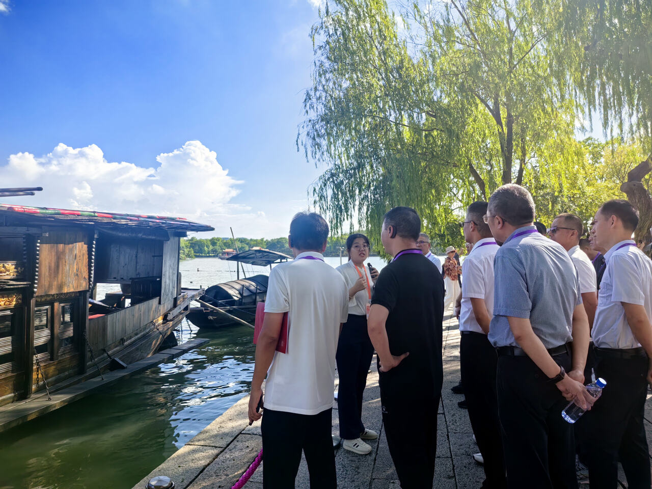 为了铭记历史,学员们沿着当年中共一大代表的足迹,体验了“重走一大路”红色旅程。在狮子汇渡口,矗立着一大代表雕像群,学员们在此驻足瞻仰,感受历史的厚重。在湖心岛,学员们参观了停泊在岛畔的“中共一大纪念船”。这艘红船见证了中国历史上开天辟地的大事变,成为中国共产党革命源头的象征。随后,学员们登上烟雨楼,在这座江南园林中感受历史与自然的交融。