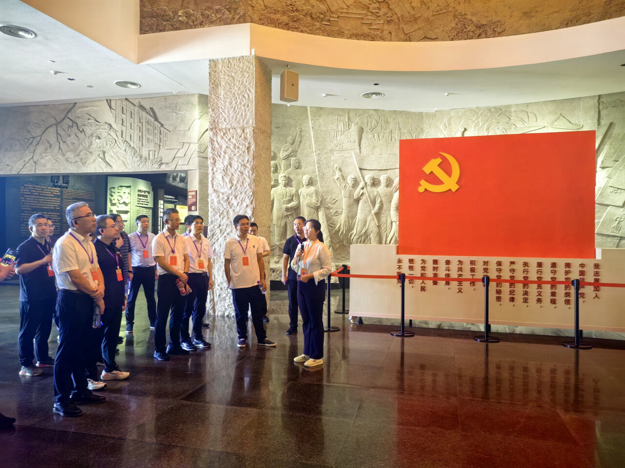 南湖革命纪念馆是行程的终点站。纪念馆以中国革命红船起航为主题,聚焦中国共产党创建,全面阐释“一个大党与一条小船的关系”。馆内设有“红船精神”展示厅,运用全息投影、互动屏等现代技术,让学员在沉浸式体验中感悟“红船精神”。